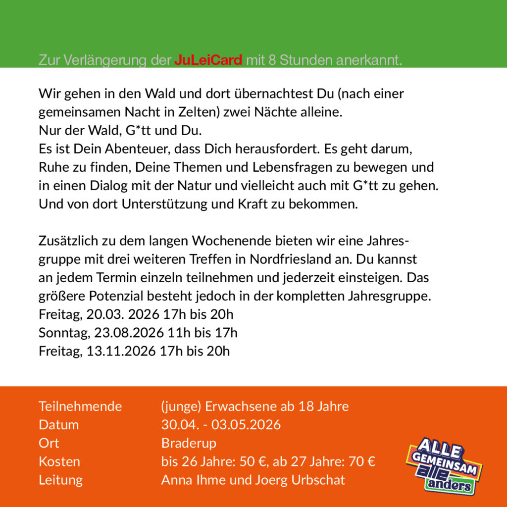 Das neue Jahresprogramm 2026 ist da! „Laut:stark Haltung zeigen!“ – unter diesem Motto starten wir ins neue Jahr. Ob laut oder leise, stark oder suchend – bei uns ist Raum für dich.
